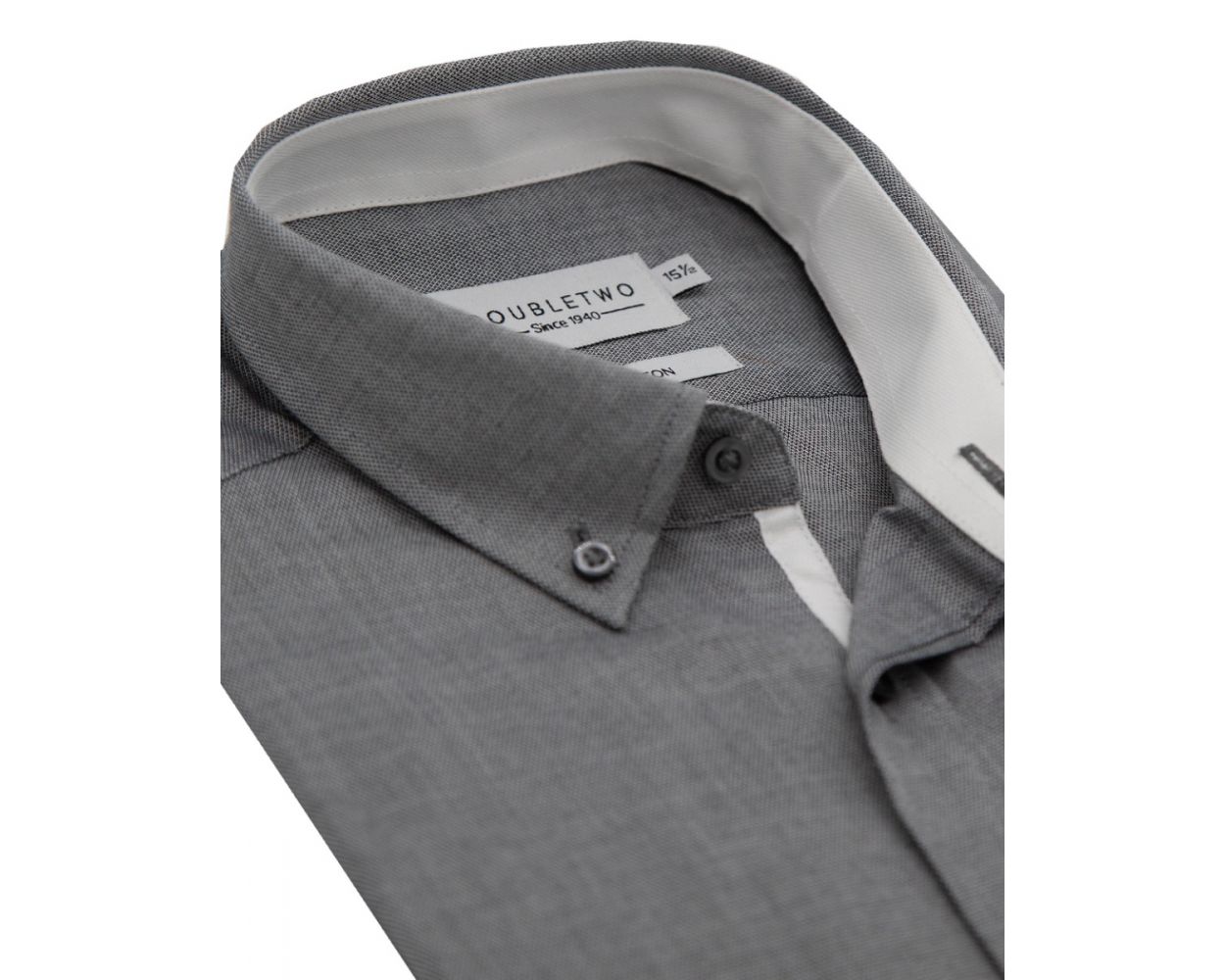 Double Two Charcoal Grey Long Sleeve Oxford Weave Shirt.