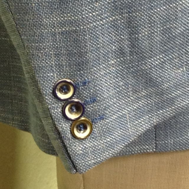 Scott Blue Linen Mix Single Breasted Jacket With Navy Piping Trim.